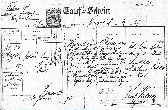 | Kinder: Joseph ( 28.02.1902 ), Julius ( 08.03.1904 ), Karl ( 16.02.1906 verst. 03.1906 ), Ernst ( 28.02.1907 verst. 02.1908 ), Johann Luitpolt ( 14.07.1908 ), Walter Josef ( 28.12.1909 ), Karl ( 04.06.1911 ), Erich ( 07.09.1913 ), Emil ( 26.02.1918 ), Erna ( 01.02.1919 ) | |